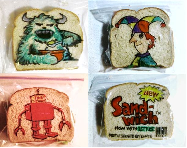 I can’t get over these cute sandwich baggies, decorated by David Laferriere, a graphic designer and illustrator, and father of two sons, from Attleboro. In an article on TODAY.com, David tells how he has been decorating his boys’ lunch since 2008, when they were in second and fourth grades.