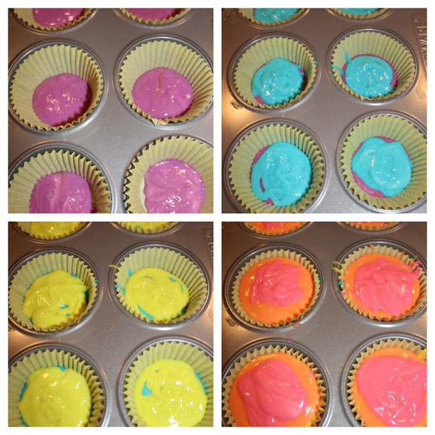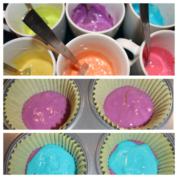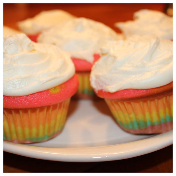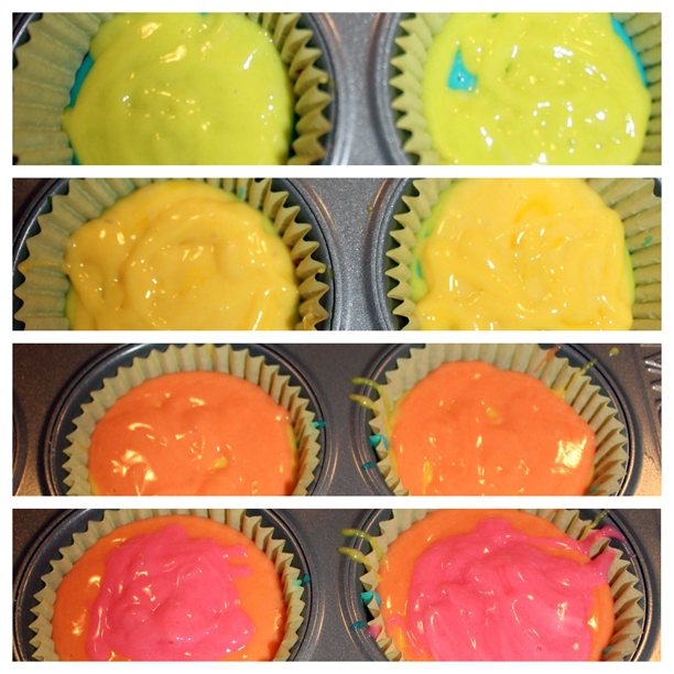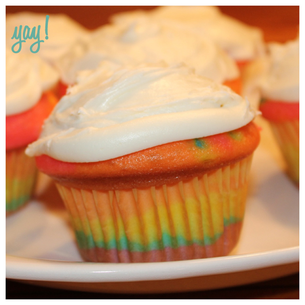 you read that right. take two on the rainbow cupcakes was a success. (in case you’re just catching up, I want to do a rainbow/colorful theme for Holden’s first birthday party, which is two weeks away. My first attempt at making Spearmint Baby’s gorgeous rainbow cupcakes was a raging Pinterest fail.)