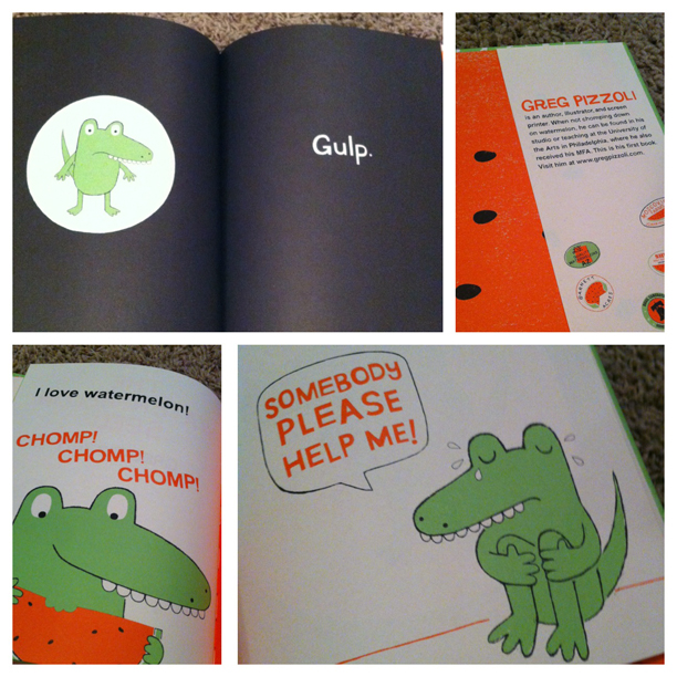 It’s about a crocodile who luuuuuurvs watermelon (CHOMP! SLURP! CHOMP!) but freaks out when he swallows a seed. It just begs to be performed and Holdy cracks up every time we read it. Check out the book trailer (which, apparently, is a thing? who knew?)