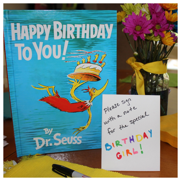 Guests signed a copy of Happy Birthday to You by Dr. Seuss with special messages for Holden.