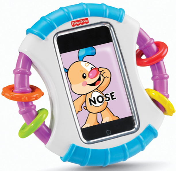 Holden has been obsessed with my iPhone pretty much since birth. For Christmas (when she was about six months old), I got her this Fisher-Price Laugh & Learn Apptivity Case for my old iPod touch.