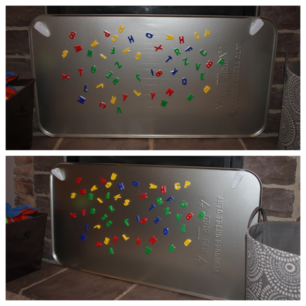 … and Command strip it to the wall, but whatever. I mean, I actually had to go into Walmart, which is pretty much the worst. But I did find the super-cute letter magnets there (for 97 cents) so that was a bonus.