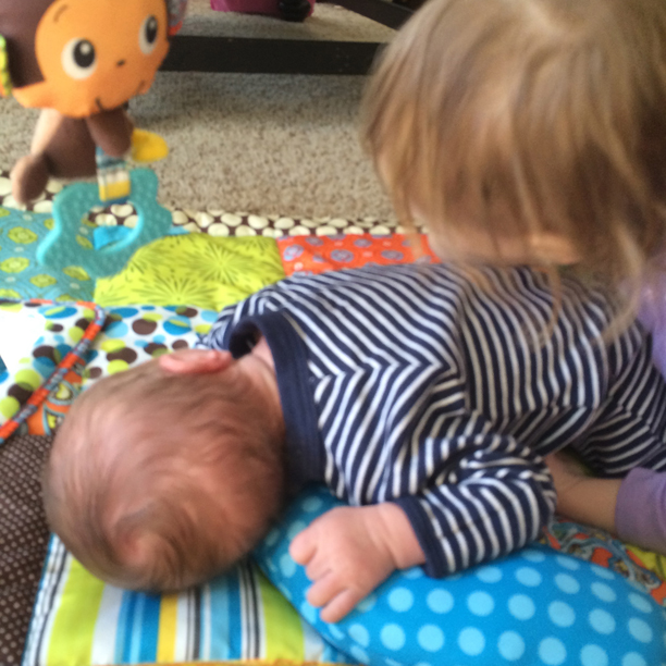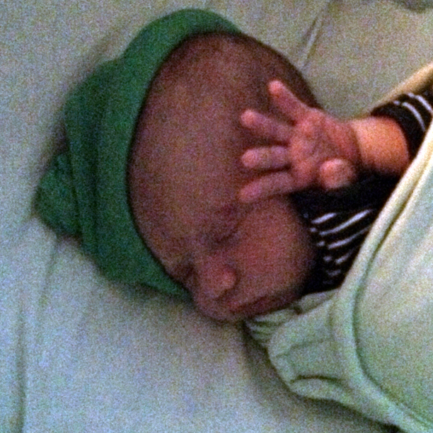 12:30pm: Holdy lies down for a nap. G is still asleep.
