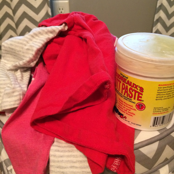 She had helped herself to the large tub of Boudreaux’s Butt Paste on the changing table and got it all in her hair…