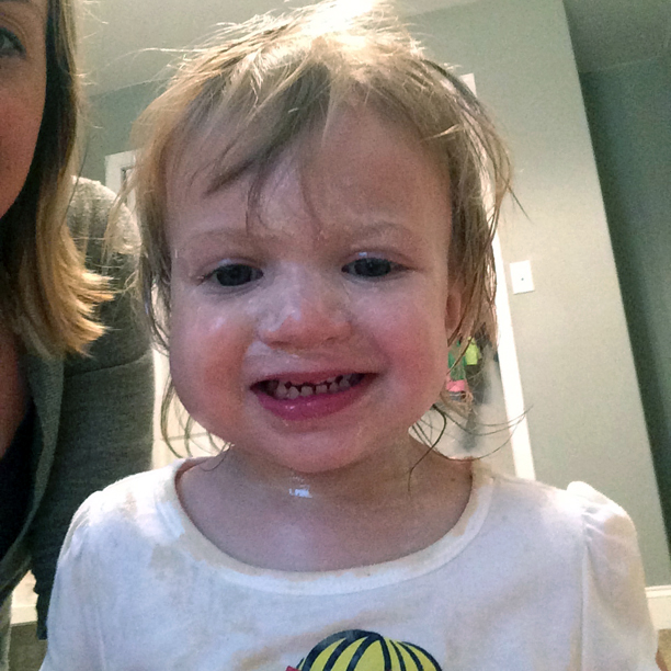 Alarmed by her unusual silence, I went upstairs and was greeted by this smiling face.