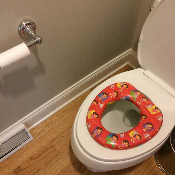 I set the timer on my phone to go off every 15 minutes, and every 15 minutes, I plopped her on the toilet and she peed. Elmo peed too.