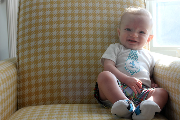 Happy 4 months, Big Guy. You are the sweetest baby; so content and pleasant 95% of the time. I’m pretty sure you think your name is “Handsome” (maybe it should be).