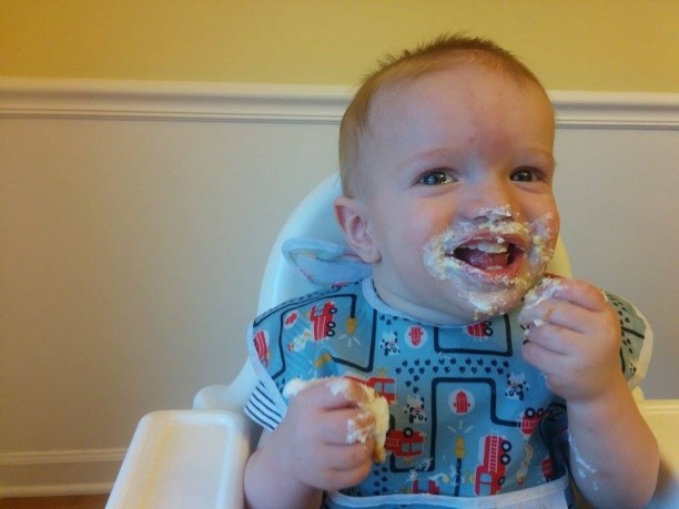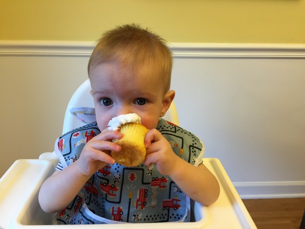 Tonight after dinner, I let the little hoss enjoy more birthday cake. While he was a little tentative at his birthday party at first, he seemed to have gotten the hang of it the second time around.
