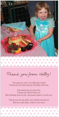 If you’ll recall, Holdy’s third birthday party was a few weeks ago. She received a lot of generous gifts from family and friends, so it’s time to say, “thank you.”