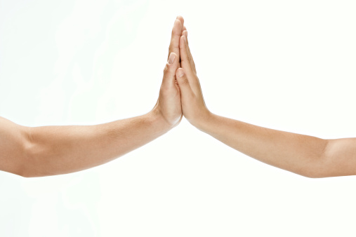 Our teacher demonstrated for us two hands pushing against each other. When one side stops pushing, the other side “falls”/loses. This hearkens back to the lesson from the first class: keep your cool and ignore the bratty behavior. Don’t fight with them and they lose the power to push back.