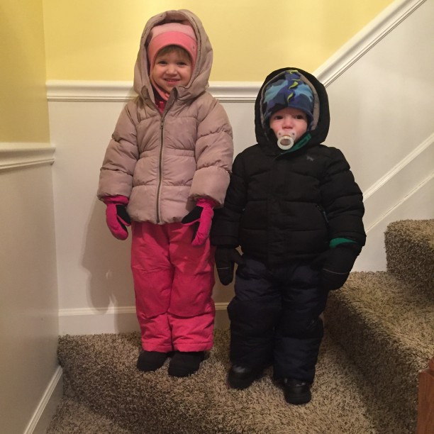 We started out okay, taking advantage of the snow by taking 30 minutes to get bundled up to play outside.