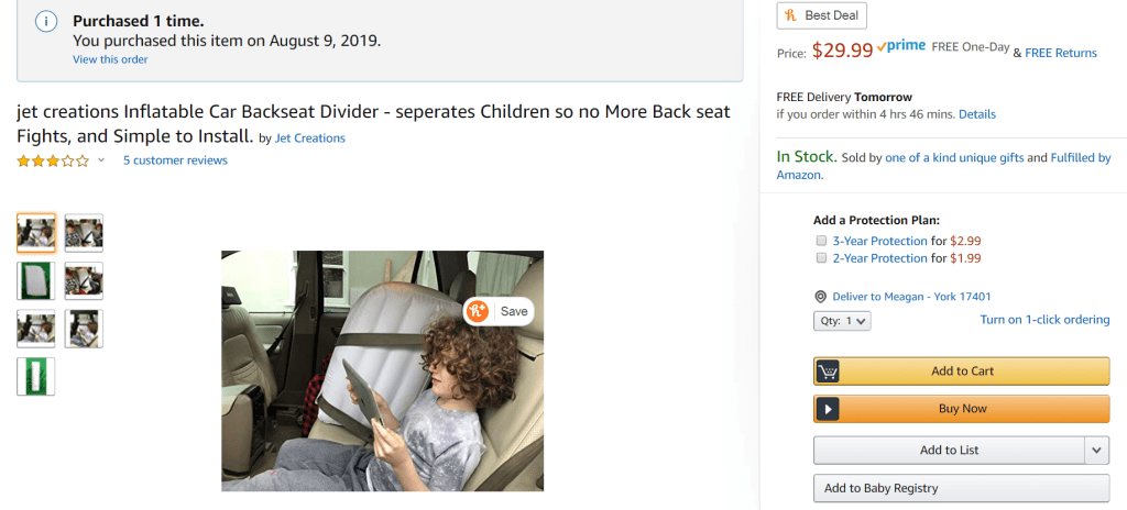 You can order your own Jet Creations Inflatable Car Backseat Divider here.*