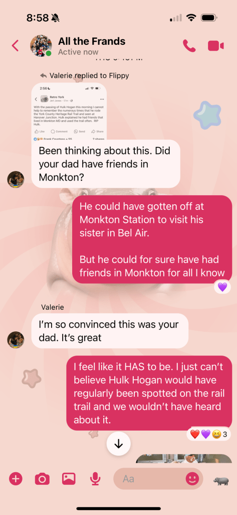 Because here’s the thing—my dad definitely biked that whole corridor. It’s not a stretch to think he might’ve chatted with someone near Westminster, maybe even mentioned visiting family in Bel Air, and that conversation turned into “Hulk owns a farm now.”